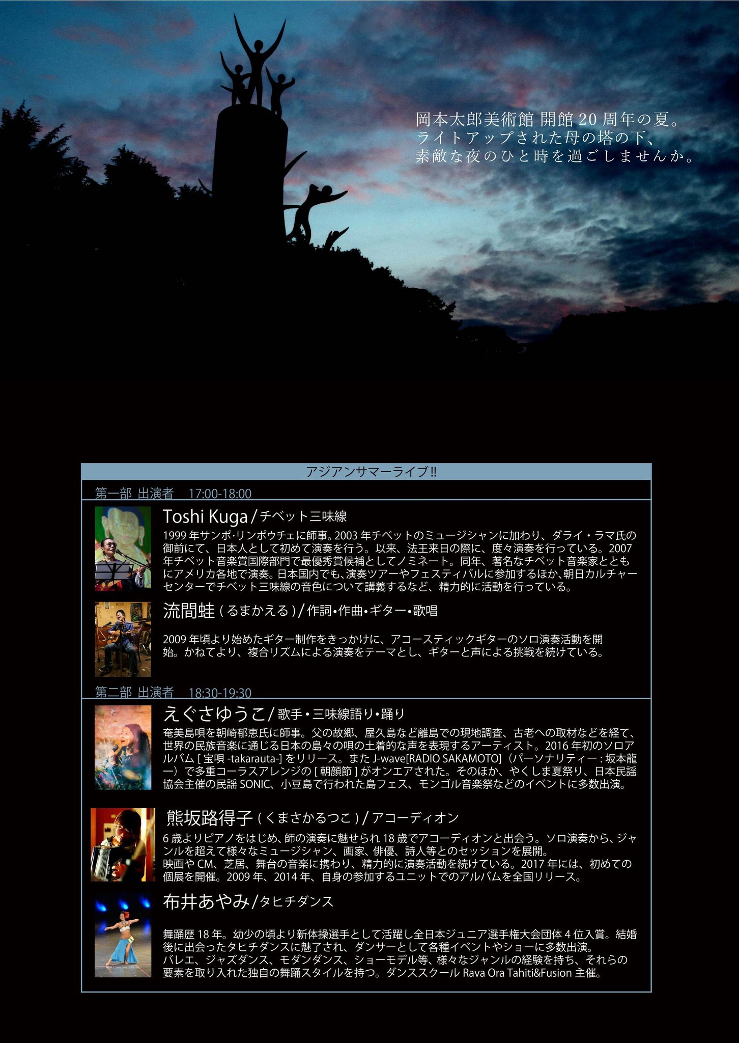 川崎市岡本太郎美術館 8 30 金 プレミアムtaroナイト を開催します 一夜限りの 母の塔 ライトアップや 屋外ライブ Bartaroでは生ビールやかき氷もお楽しみいただけます 展示室の謎解きイベントではこの日だけの特別なプレゼントもご用意 特別